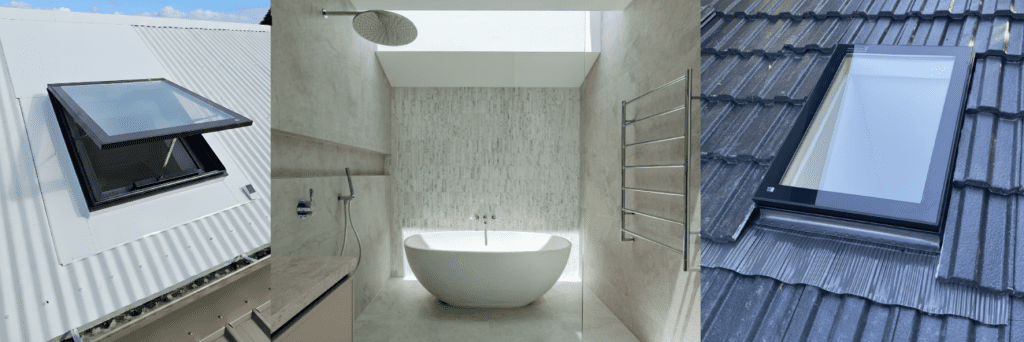 Need a slimline shaft over a vanity? The builder can frame the shaft smaller than the skylight to your requirements and achieve a frameless glass finish internally.