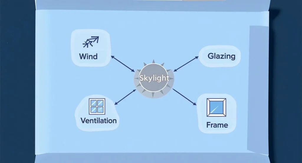 It shows how things like ventilation, glazing, and the frame design are all interconnected, contributing to the skylight’s overall performance and the impact it has on your space.