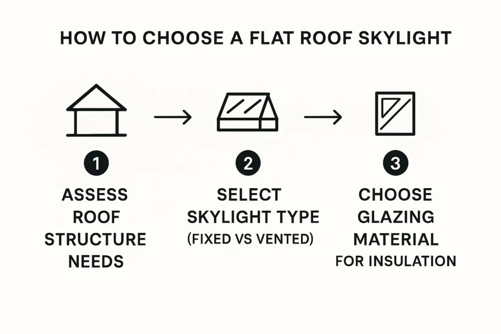 This diagram shows a simplified view of the selection process for a flat roof skylight, highlighting the key decisions you’ll make before you even get to the installation stage.