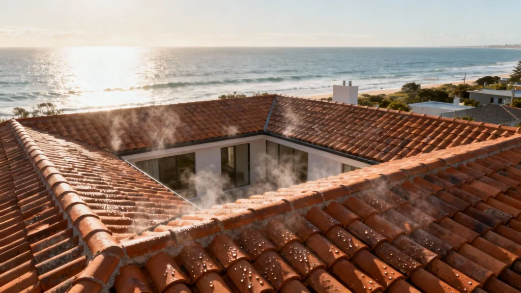 Heat is only half the story. Melbourne’s humidity is another major threat. When warm, humid air gets trapped in the roof cavity, it condenses on cooler surfaces overnight. This leads to damp insulation, timber rot, and the perfect breeding ground for mould and mildew.