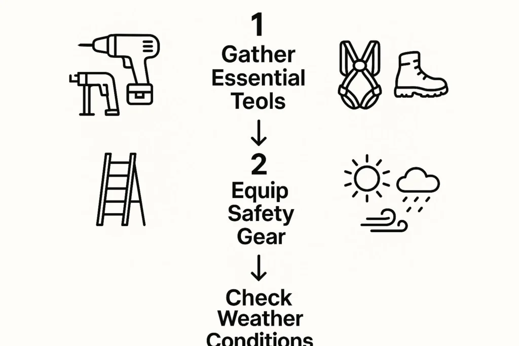 Never compromise on safety gear. High-grip footwear provides stability on angled surfaces, a properly fitted safety harness can be lifesaving in case of a slip, and sturdy gloves protect your hands from sharp roofing materials.