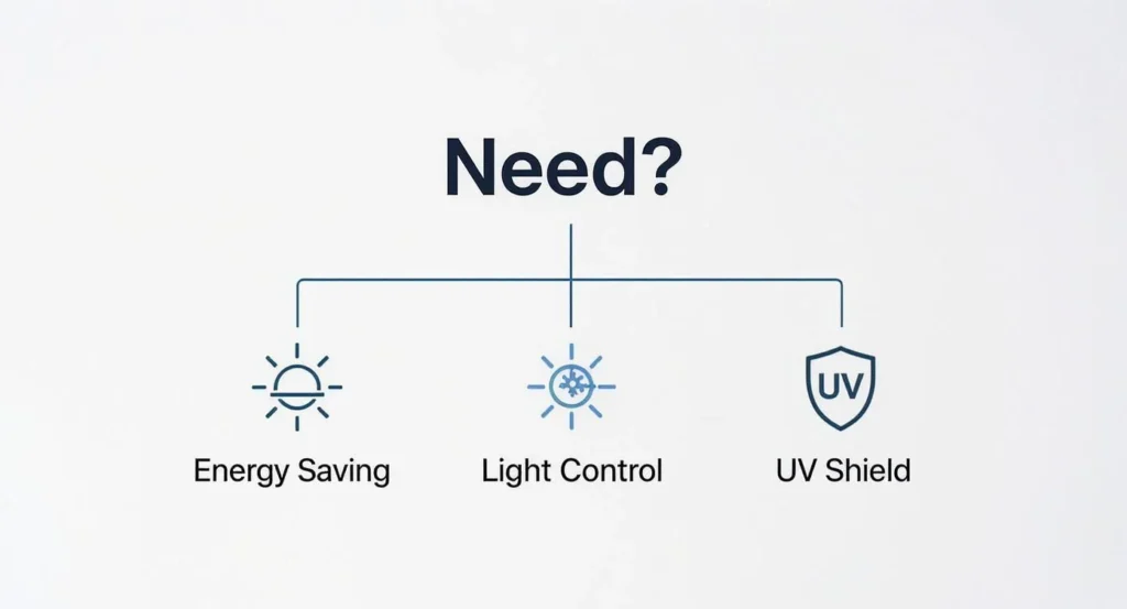 This decision tree infographic helps visualise which blind benefit—from energy savings to light control—best aligns with what you need for your space.
