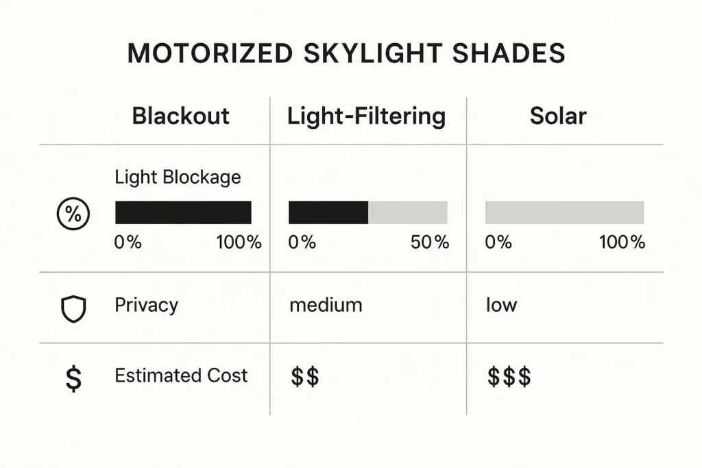 - Battery-Powered Systems: Super flexible and perfect for adding shades to existing skylights without the hassle of new wiring. The batteries last a long time, are rechargeable, and are a breeze to manage.