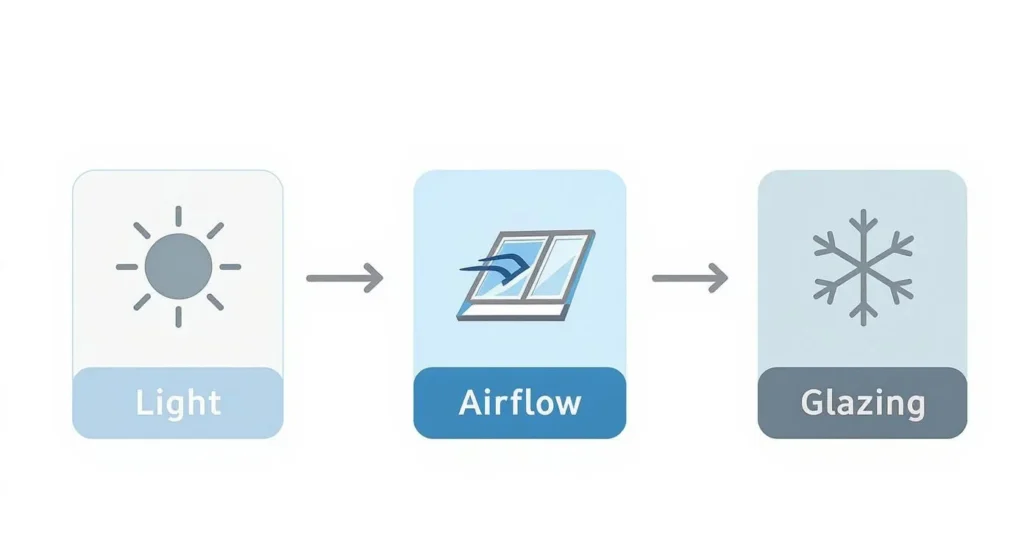 | Primary Function | Maximises natural light only | Provides both light and airflow | Offers superior thermal insulation |