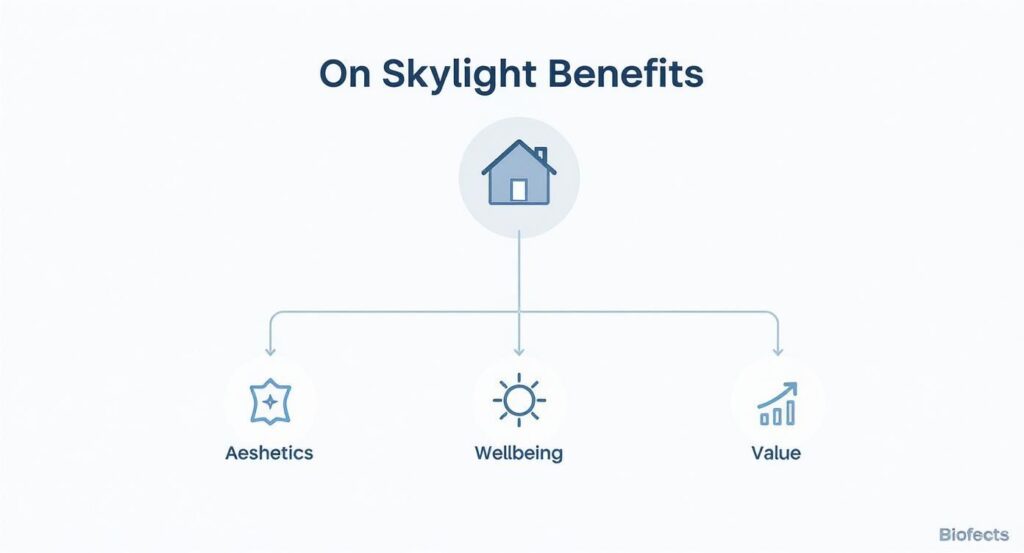 The benefits of different skylight types often align with key homeowner goals. This infographic illustrates how selecting the right skylight can improve your home’s aesthetics, your personal wellbeing, and its overall market value.